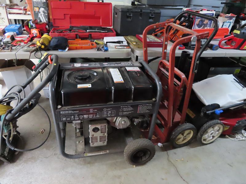 • Craftsman sb400 24” width snow thrower, Craftsman II 14 hp 38 in cut riding down mower, Poulan PRO 21 inch cut push mower, Stihl d11av chainsaw, wood chipper/shredder, Blue Clean 118 portable power washer, Cruise-n-Carry 2.7 hp model 6700 boat motor, Minnkota weedless 35 four speed 17 lbs. thrust boat motor, lawnmower bagger, Boating accessories, including life jackets and water tubes, oars, fishing, rods, Rigid yard equipment roller, sawhorses, garden hoses and more!