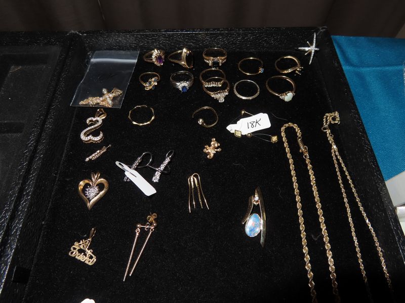 • Jewelry incl. 10k, 14k, rubies, diamonds, sapphires, emeralds, topaz, Sterling and costume.