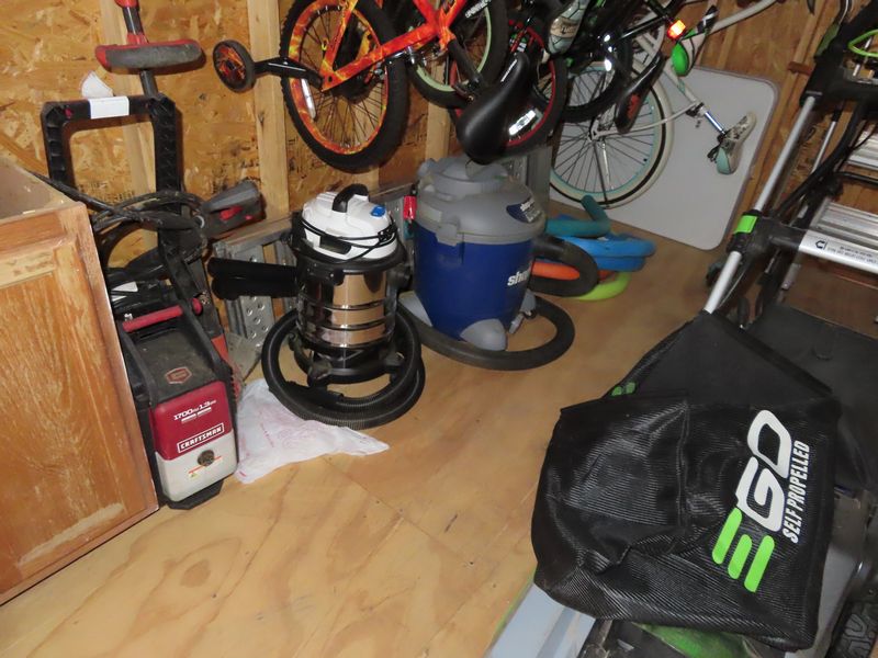 • Tools incl. Shop Vac, ladders, Shop Vacs, Craftsman pressure washer, small amount of garden and hand tools