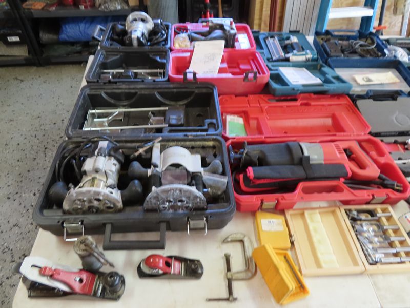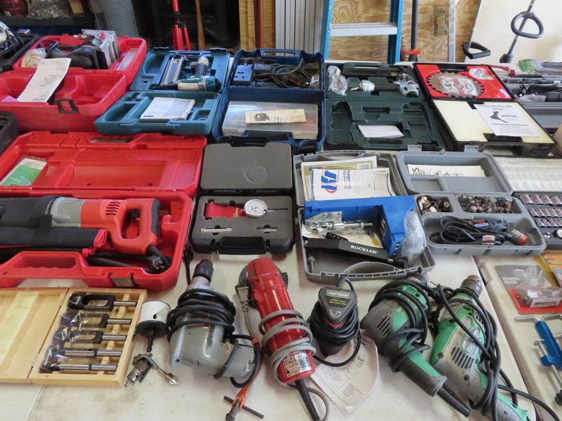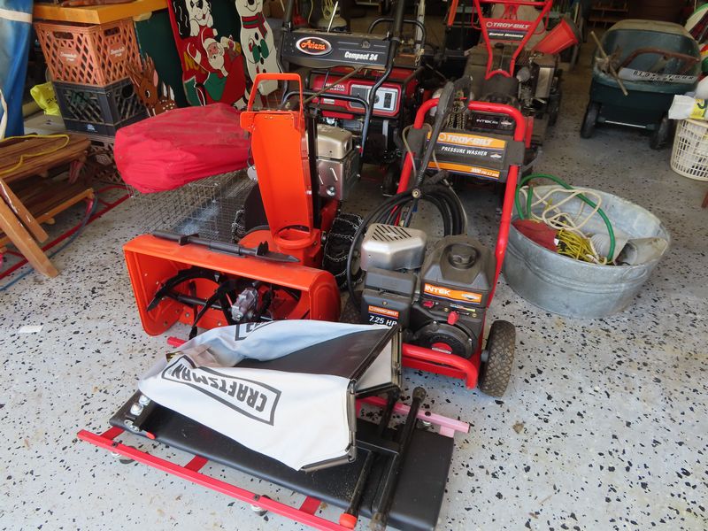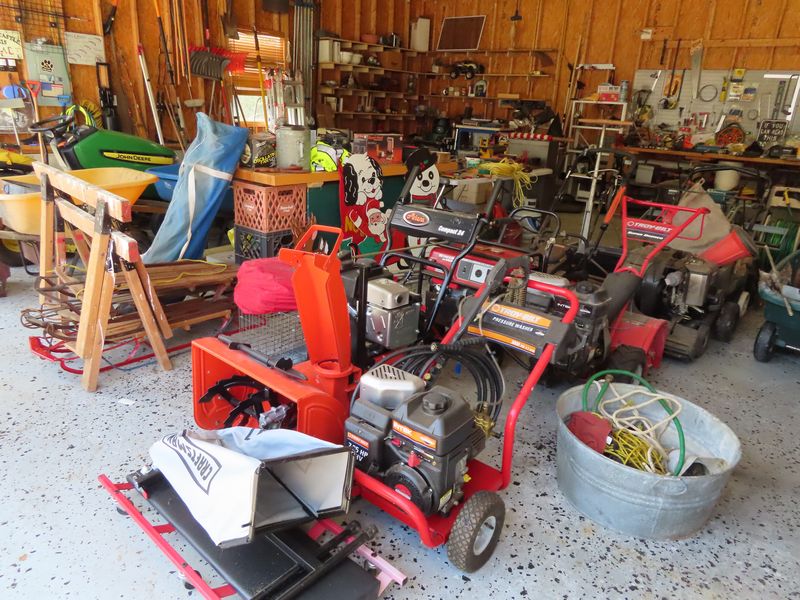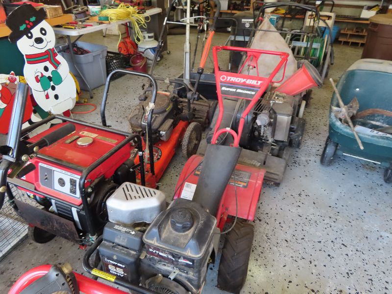 - Tools and yard equipment incl. Grizzly industrial Dust Collector model G1028Z2, Dewalt 13 inch heavy duty thickness planer, Craftsman Sliding compound miter saw, Kreg router table, Craftsman contractor table saw, Ariens compact 24 snow thrower, Troybilt pressure washer, Troybilt super bronco tiller, Honda eb2500 generator, Briggs & Stratton walk behind trimmer mower, Simplicity snow blower, lawn mower lift, aerator, brinkman smoke grill, Stihl Fs 74 weed eater, Husqvarna weed eater, feather life weed eater, Remington hedge wizard, 6ft Werner ladder, Little giant plank, little giant ladder systems, Makita nailer, Craftsman biscuit joiner, Craftsman Sabre saw, Hitachi nailer, Black and decker dragster, craftsman sander, Milwaukee heavy duty sawzall, Husqvarna 50 chainsaw, Stihl wood boss chainsaw, black and decker belt sander, hammers, screwdriver, wrenches, pliers, propane torch, test rite tool box, hedge trimmers, wheels barrows, speed away sleds, rakes, shovels, Makita pneumatic air compressor, car ramps, floor jacks, shop vac, Honda em 600 portable generator, Lincoln electric arc welder, saw horses, extension cords, ton of hand and garden tools!