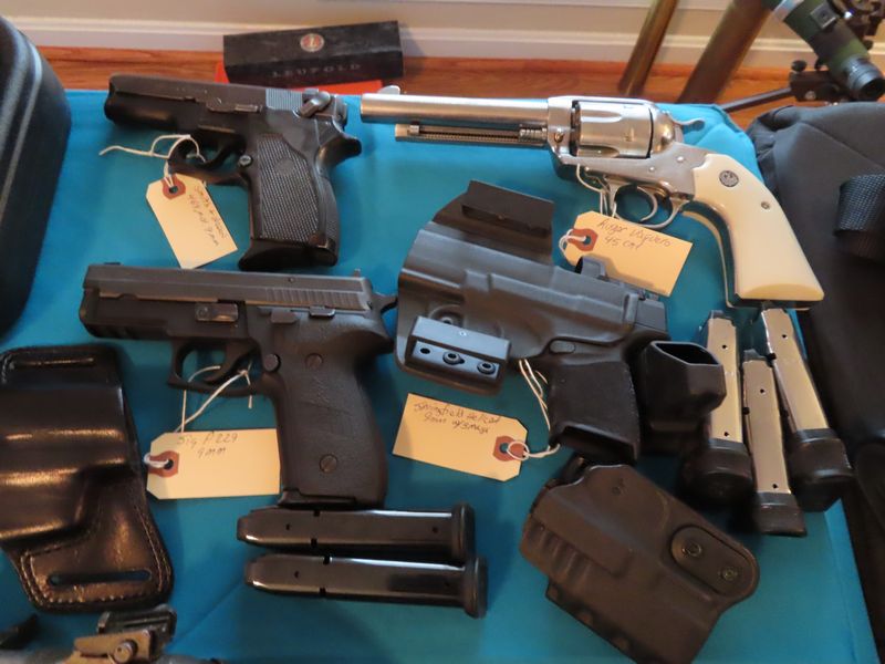 - Guns incl. SCAR FNH 17S 308 with Leupold VXR Patrol scope, 1941 Johnson Semi-Auto 30-06, Remington 700 308 w/Leupold M5 scope. Springfield M1 Carbine 30 cal. May 1943, Springfield M1 Grand 30 cal 30-06, Springfield 1898 30-40 Krag, Colt Sporter M4 Carbine (VA RESIDENCE ONLY) Remington 870 12ga. Pump., Ruger Vaquero .45, Charter Arms Bulldog .44 special, Springfield Hellcat 9mm., Smith & Wesson 629-1 .44 magnum stainless, Kimber Pro Carry II 1911 style .45., Sig P229 9mm, Ruger 22/45 .22 LR, Remington model 700 223 cal bolt action, 1917 Eddystone 30-06, Remington 870 12ga., Remington 700 243 Win, Glock 19 9mm, Iver Johnson Champion 16 ga., Mossberg 500C 20ga. pump, Remington Model 6 Rolling Black .22 LR, Ruger Airhawk and Daisy Powerline .177 pellets.