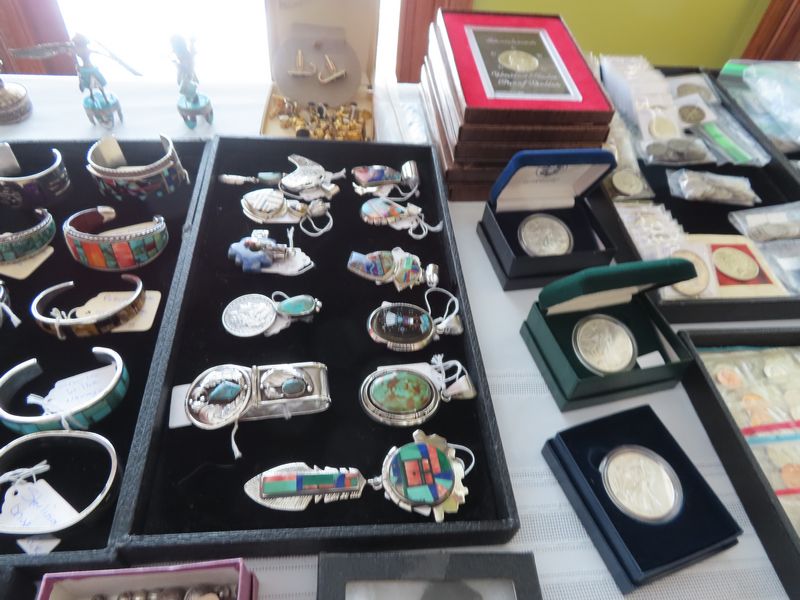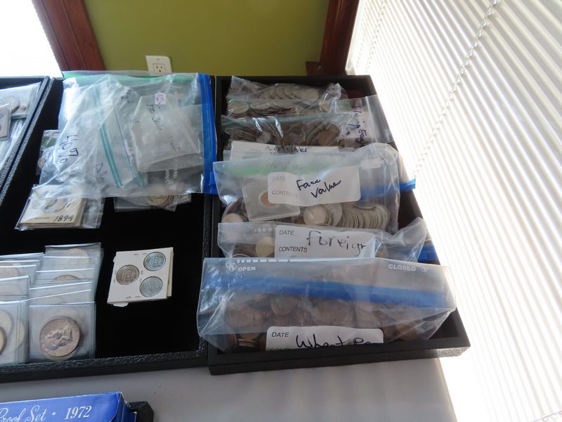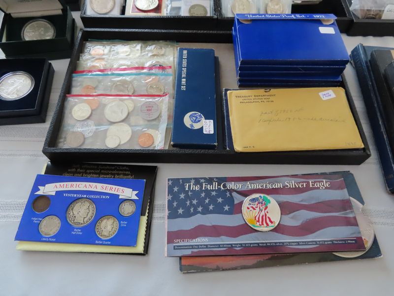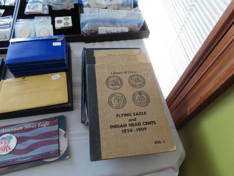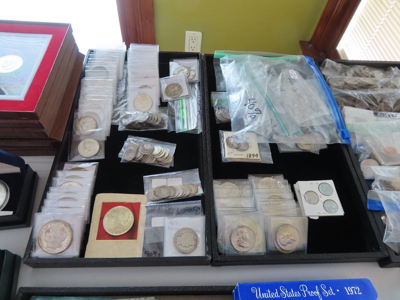 Coins: incl. Silver coins: Morgan, Peace and American Eagle dollars, Kennedy Half Dollars, Barber Half Dollars, Walking Liberty Half Dollars, Franklin Half Dollars, Washington Quarters, Standing Liberty Quarters, Barber Quarters, Roosevelt, Barber and Mercury Dimes,Jefferson Wartime Nickels, Foreign silver coins. Other coins: Eisenhower dollars, Susan B Anthony dollars, V nickels, Flying Eagle cents, Indian cents, wheat Pennie’s, Buffalo nickels, foreign coins.