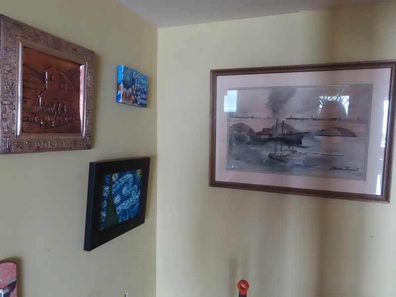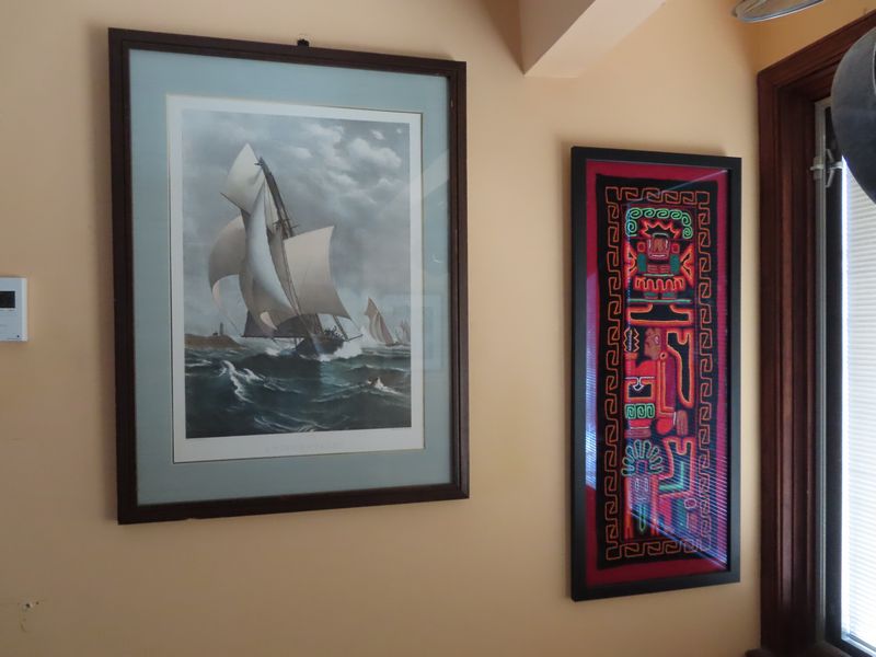 • Art incl. “Villa Visconti” by the American Neo-Surrealist artist Jim Buckels, “A Winning Yacht” by J.O. Davidson, Vintage red embroidered Peruvian Inca Wall Hanging, lithograph “The New Millennium” by Steven Lavaggi, “Sacred Journeys” By Chuck Ren, , “The Starry Night” by Vincent Van Gogh, framed prints by Houston Hancock, Enid Romanek, Coffelt, “Color of Dreams” by Richard Calvo, “Peace” Dreamcatcher by Russ Dockenan, “Amalfi Boats” by artist Howard Behrens, multiple David Walker prints, “Antica Giacomo” by S. Sam Park, “Bellagio Promenade” by Howard Behrens, original landscape painting by Joan Ng, “Garden at Sainte-Adresse” by Claude Monet, “Two Suitors” by American Neo-Surrealist artist Jim Buckles, limited edition serigraph print “Freccia D’Oro (Golden Arrow)” by American Neo-Surrealist artist Jim Buckles, Original drawing “Nude Study” by Lennox Campello, “Fire Chief” by artist Tom duBois, “The Edge of the World” by The Lonely Pixel Photography, “Lake Como Landing” by Howard Behrens, Sculpture Watching the Dance by Onondaga artist Peter B. Jones and more!