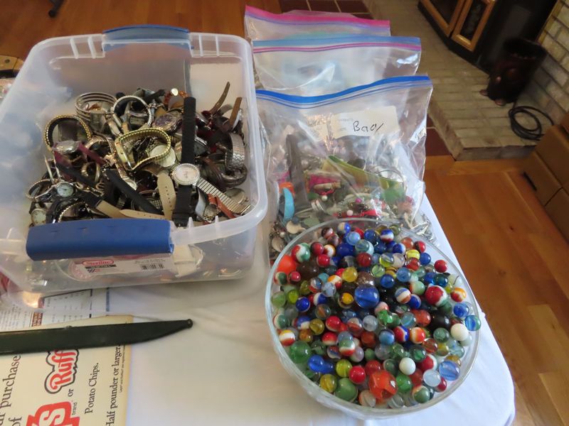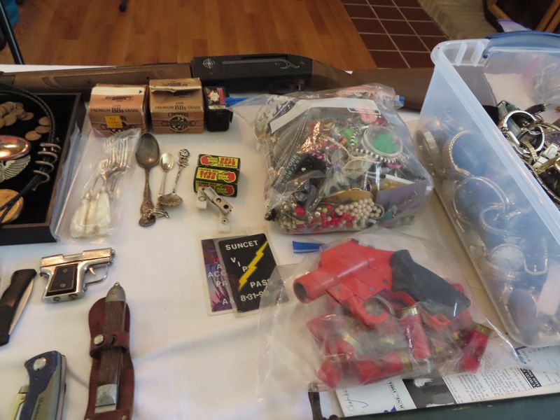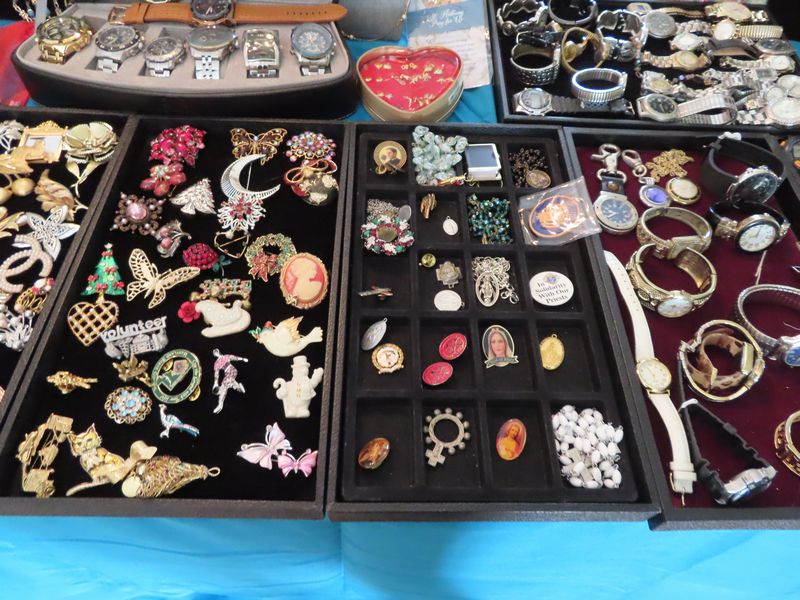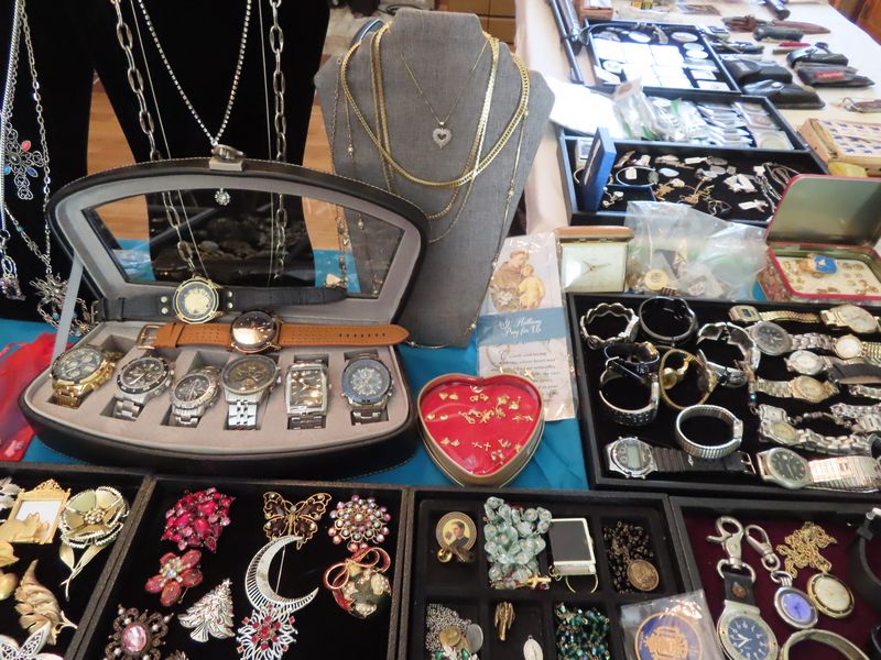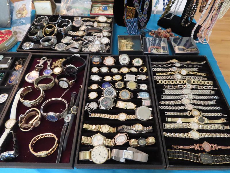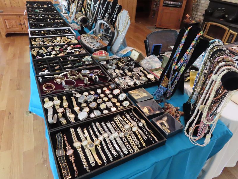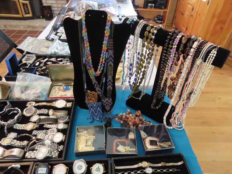 • Jewelry and Watches incl. Large collection of costume jewelry, including necklaces, bracelets, chains, brooches, pocket watches and rings. Large selection of men’s and women’s watches, including Seiko, Timex, Bulova, Expedition and more.