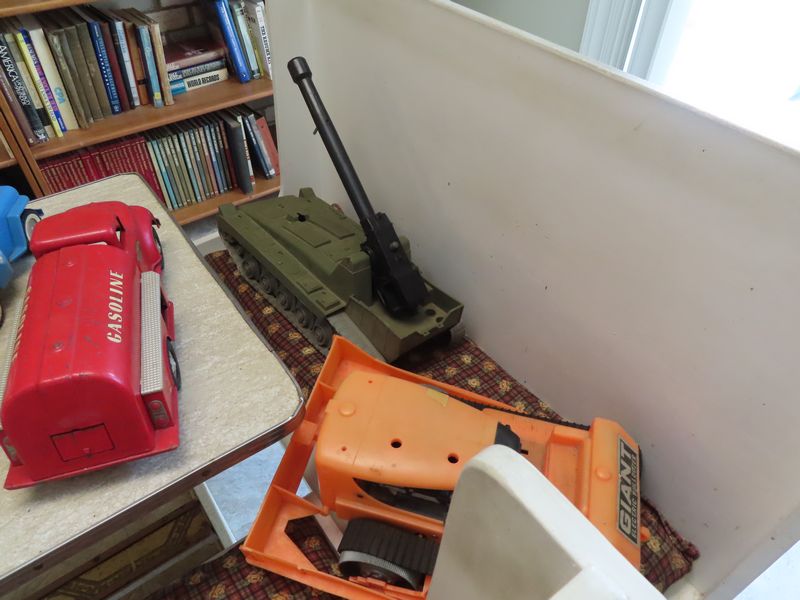 Lot of children’s vintage toys, metal planes, vintage trucks, dishes, Rhapsody guitar, NES system with one game, games and much more!