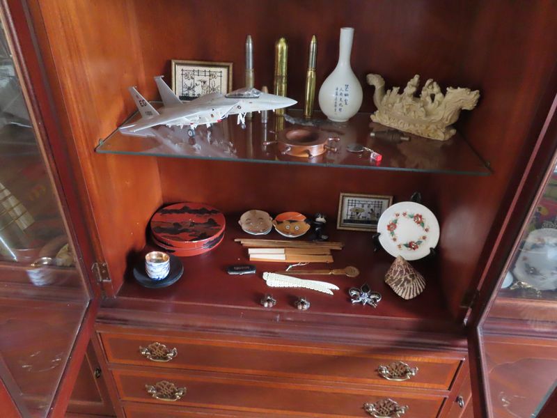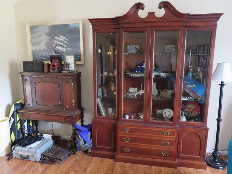 - Furniture incl. Wing back chairs, solid wood dining room table with 6 chairs and matching hutch, antique secretary desk, China cabinet, King and queen size beds, Dressers, night stands, kitchenette table with chairs, patio furniture and more!