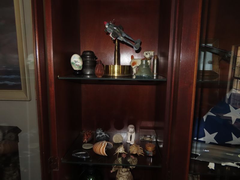 - WWII military badges, pins, belts, guns and bayonets.