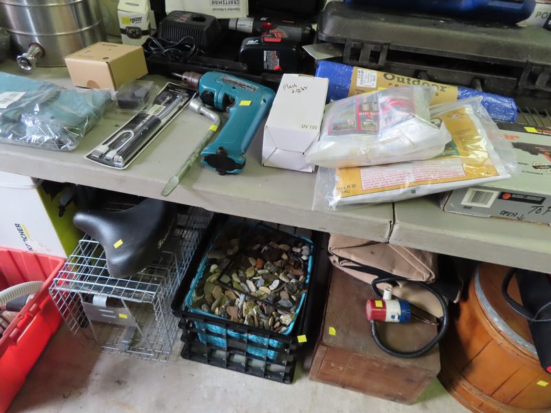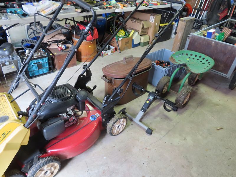 • Craftsman sb400 24” width snow thrower, Craftsman II 14 hp 38 in cut riding down mower, Poulan PRO 21 inch cut push mower, Stihl d11av chainsaw, wood chipper/shredder, Blue Clean 118 portable power washer, Cruise-n-Carry 2.7 hp model 6700 boat motor, Minnkota weedless 35 four speed 17 lbs. thrust boat motor, lawnmower bagger, Boating accessories, including life jackets and water tubes, oars, fishing, rods, Rigid yard equipment roller, sawhorses, garden hoses and more!
