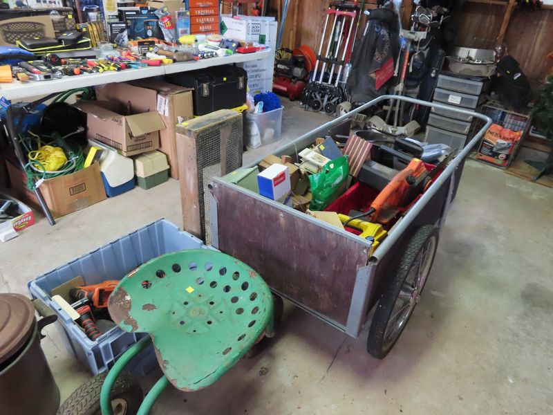 • Furniture incl. Several Antique multi-drawer and slotted cabinets. MCM desk, MCM queen sized poster bed with dresser and night stands, couch, chairs, twin size beds, bookshelves, trunks, desks, Antique child’s desk with chair, quilt racks, Antique bistro chairs and tables, Patio and pool side furniture, Solid wood corner cabinet, Solid wood Chess and Checker table set, enamel top tables, wicker furniture,