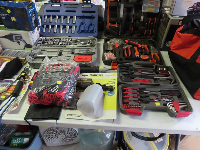 • Karcher new in box electric pressure washer. Little Giant system, still AP 300, still chainsaw, still f5a 65 weed eater, several electric weed eaters, Craftsman 135 psi air compressor, air cooler new in box model atf-015l, Black & Decker 5500 BTU air conditioner, Black & Decker drills, Landmen new in box fire pit, new in box collapsible outdoor wagon, Craftsman industrial reciprocating saw, Craftsman torque 18 volt drill, Sunjoe electric lawn dethatcher Husqvarna new in box sprayer, tons of hand and garden tools!