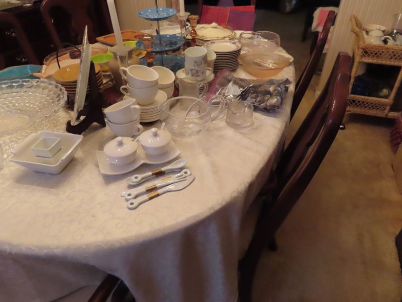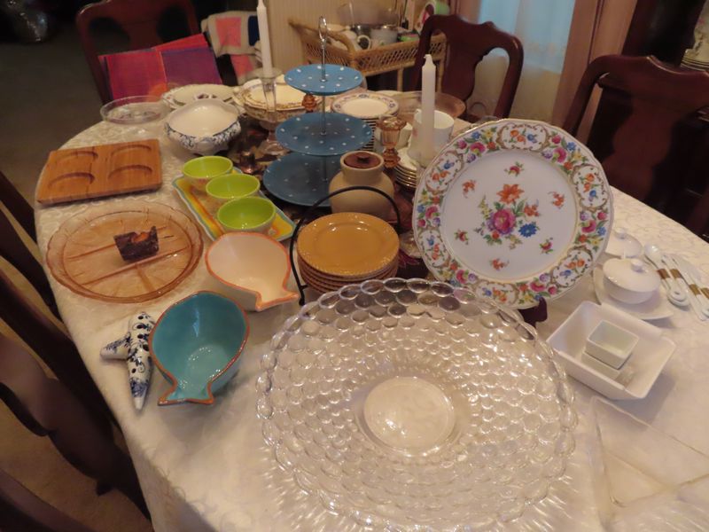 • Pottery, Glass and China incl. American Brilliant, Evesham, Mikasa, pink depression glass, Crate&Barrel, Sorrento, Limoges, creative co-op and others.