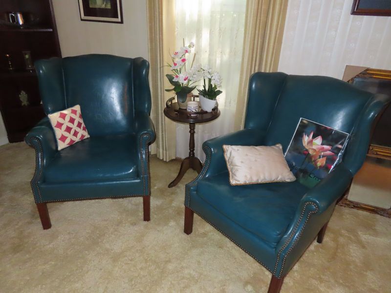 - Furniture incl. Thomasville chest of drawers with matching nightstand and king size bed, lane trunk, antique tiger oak dressers, Stiffel lamps, Thomasville end tables, matching leather wingback chairs, Lenoir house 3 piece display cabinet, Thomasville dining room table with 6 chairs, Thomasville hutch, Thomasville buffet, two matching Flexsteel suede sofas, several Safavieh rugs, Surya rugs, rolling island and much more!