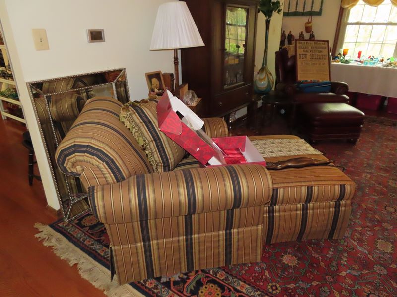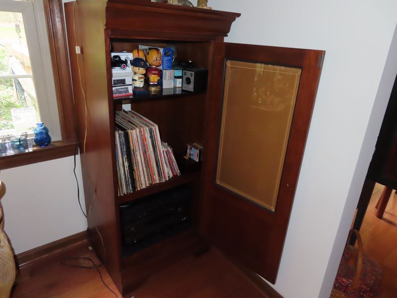 - Furniture incl. Barrister bookcases, MCM table with 3 chairs, MCM metal patio sets, Pie safe, display cabinets, Sleeper sofa modern grey couch with matching loveseat, La-Z-Boy recliner, bar stools, bar height table with four chairs, Full size Sleep Number bed, queen beds, 2 baby cribs, trunks, dressers, chest of drawers,