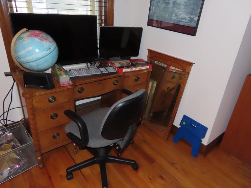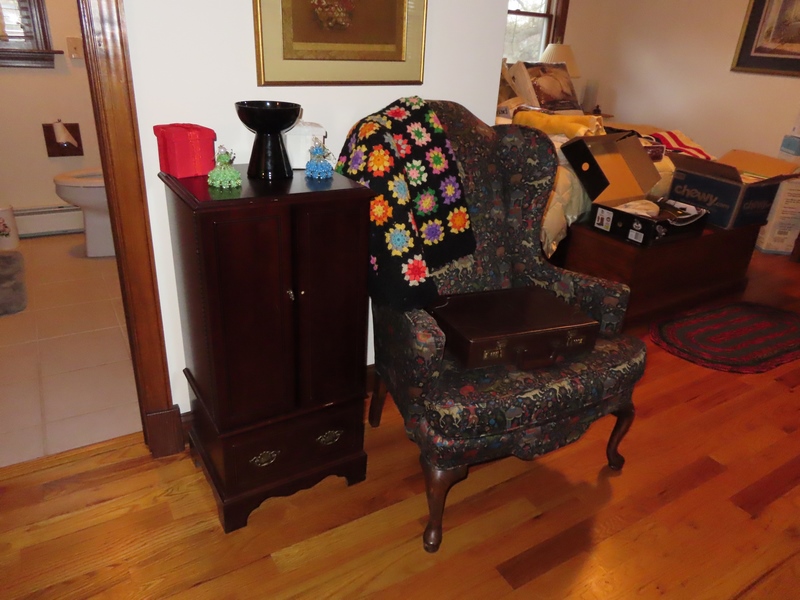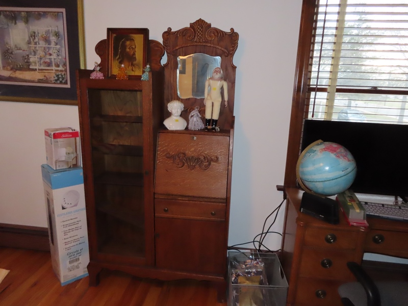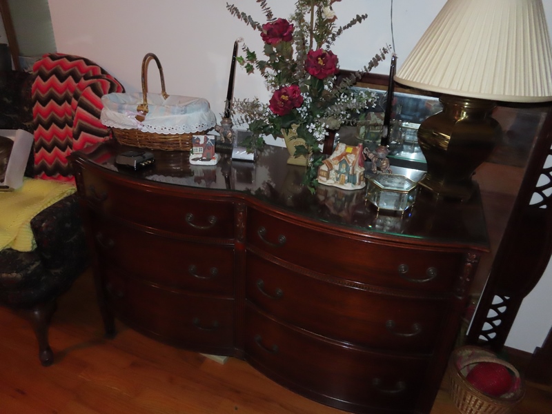 - Furniture incl. Henredon Artefacts buffet, Antique mahogany bow front dressers and chest of drawers, Teak dresser with mirror and according closures over drawers. Antique secretary/display cabinet, Dixie dressers with matching night stands, Queen size motorized massage and heated bed, queen size bed, waterfall dresser with mirror, screen divider, Renaissance Revival chairs, benches and accessories. Carved dragons and Asian scenery chair with marble seat, pipe stand, carved wooden men table base with a glass top, nesting tables, Eastlake coffee table and chair, Jewelry chests and boxes, Leather oversized chair with matching ottoman, recliners, La-Z-Boy brand new motorized dual reclining loveseat, carved live wood coffee table with matching end table, wingback chairs, vintage couches and lighted curio cabinets, display cabinets, round table with 4 matching chairs, bookshelves, solid wood dining room table with 6 chairs, file cabinets, several Rubbermaid shelves, trunks, vintage shelves. Several cabinets in great condition for a kitchen. They are solid wood too!