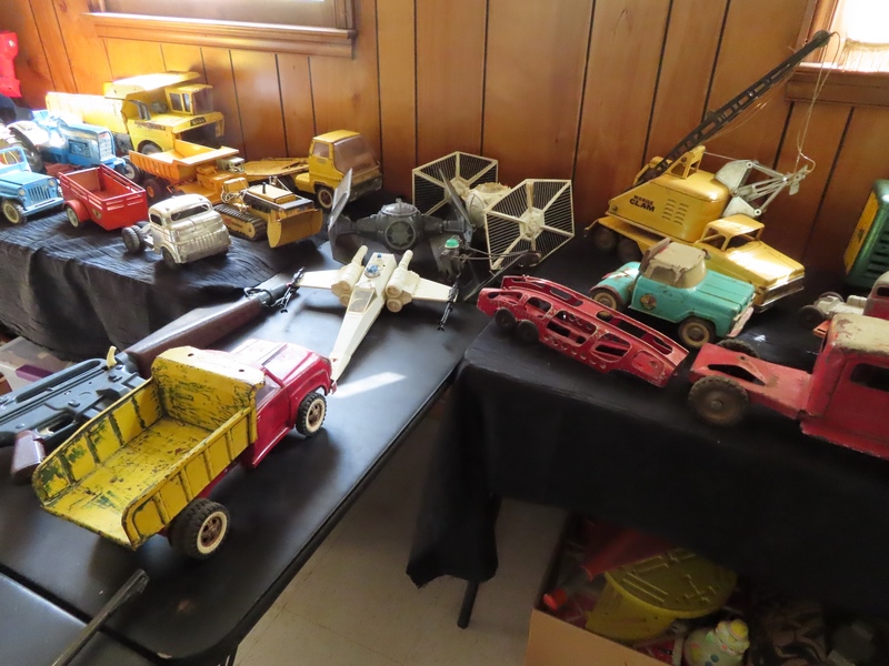 - Antique and vintage toys incl. Tons of cast iron horse and buggies, Amish people, New in original box Gilbert Erector Set not ever assembled, mechanical banks, Texaco Fire Chief fire truck, Lionel trains, Mantua Tyco train set, Hafner train set, Tonka trencher, Mighty Tonka dump truck, Tonka forklift, Hubley mighty metal truck, International Pay Hauler, Tonka Mobile clam, Tootsie Toy, Matchbox, NIP McDonalds, Snoopy Fisher price Dog, Hubley school bus, Mary Kern, Snowpen and friends, TY beanie babys, Cabbage Patch dolls, Byers Choice The Carolers and tons more!