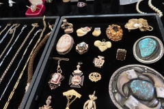 - Jewelry incl. Massive 14k & 18k necklaces and rings for men(not pictured) Gorgeous diamonds, rubies, sapphires, aquamarine, opals, leopard agate, citrine quartz, several 10k, 12k, 14k, 18k, 22k, and 24k necklaces, rings, brooches, pins, pendants, fire opals, shell cameos, Masonic, Elks teeth in gold, several 10k, 14k, 18k and 22k watch fob chains, Amazing art in sterling jewelry incl. several Squash Blossom necklaces, massive sterling and turquoise bracelets, necklaces, belts, bear claws, tons of sterling making beads, pendants, brooches, loose wire, turquoise, coral, just about everything you need to make your own jewelry. Several military, Boy Scout, Girl Scout and Masonic pins, small amount of costume jewelry.