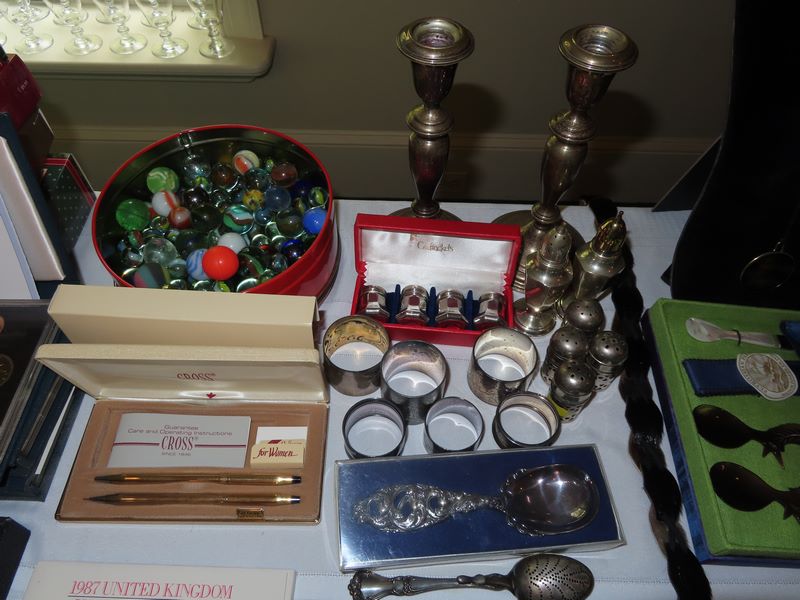 - Sterling candlesticks, napkin rings, salt and pepper, berry spoon and others.