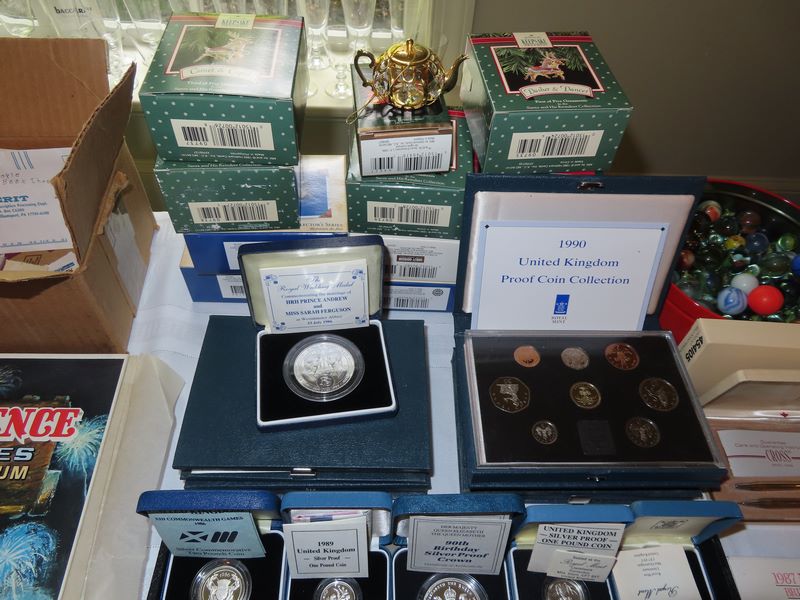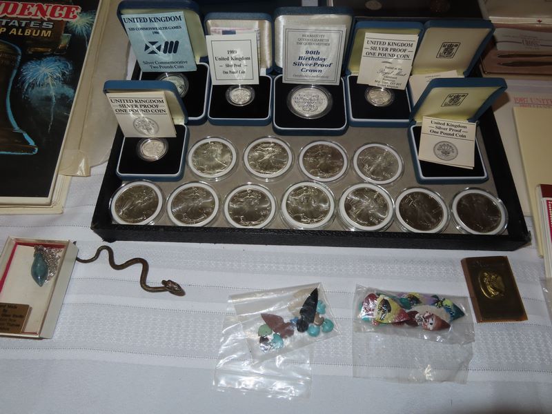 - Coins incl. 1986-1997 American Eagle 1oz silver rounds, several ancient coins, numerous UK silver coin proof sets