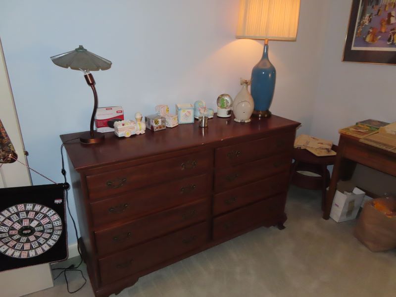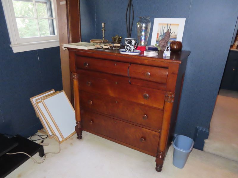 - Furniture incl. Antique French 1800’s walnut armoire, Mahogany frame black webbed lounge chair by Niedermaier with ottoman, American Chippendale Mahogany Oxbow desk with married 18th century Boston secretary, Massachusetts tea table in baroque mahogany reproduced from an original 1750’s style, Antique Chippendale tea table circa 1730-1775, Late 20th Century Vintage Boho Curtis Jere Lily Pad coffee table with glass top, Walnut table with 5 leaves, Step Tansu Chest Set, antique trunks, burlwood flatware chest of drawers, Jacobean buffet, several drop leaf occasional tables, Continental Furniture Co. dresser, Upholstered and leather sofas, chairs and loveseats. 19th Century Pedestal desk, Antique spindle leg parlor table,