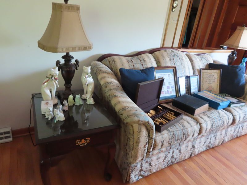 - Furniture incl. MCM coffee, end tables and couch. Thomasville queen and full size bedroom suites with dressers, night stands, headboard, footboards, rails, chest of drawers. Thomasville dining room table, 6 chairs, buffet and hutch. Couch, loveseat and chairs. Lots of metal patio furniture.