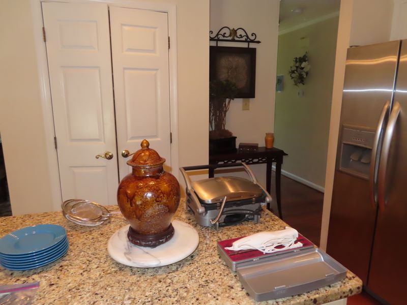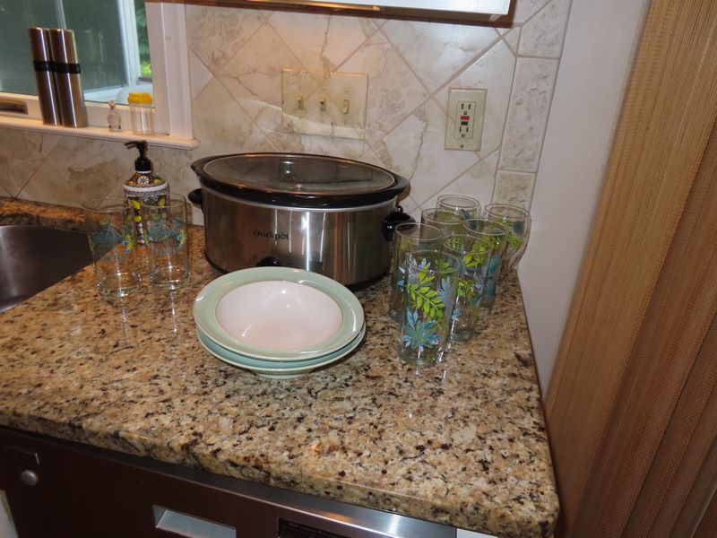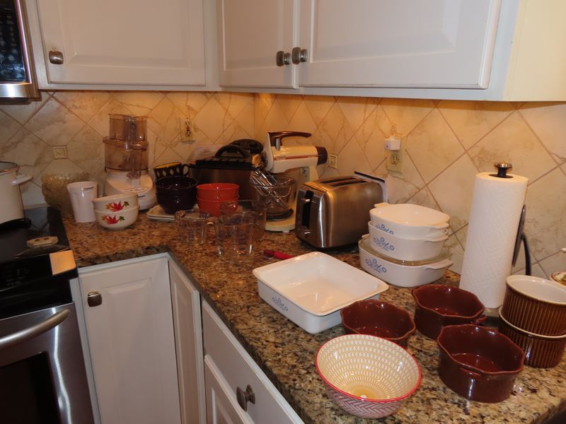 - Kitchen items incl. Crock-pot, Sunbeam Mixmaster, Knapp Monarch toaster, deep fryer, Cuisinart food processor, red Chopper 5-minute chef. Griddler by Cuisinart, Hamilton Beach electric knife, Corning Ware and a small amount of kitchen pots and pans and accessories.