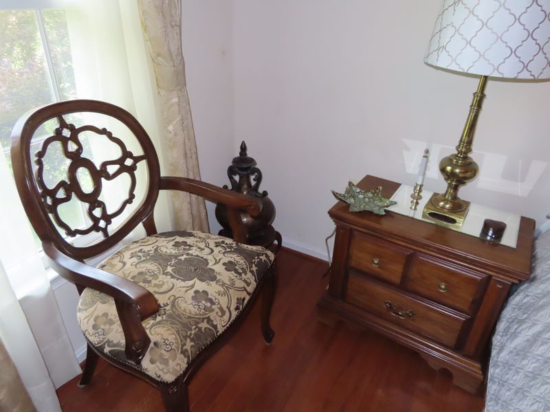 - Furniture incl. Ethan Allen dining room table, Pembroke Chair Corporation matching wingback chairs, antique ornate corner chair, cushioned suede dining room chairs, Rosewood carved secretary desk, pedestal CD display cabinets, glass top coffee tables, La-Z-Boy couches and occasional chairs, barstools, glass top patio table with three metal Patio chairs, wicker patio furniture, several occasional tables, tons and tons of household décor and lamps, Stanton Cooper couch, mahogany tilt top table, lighted display cabinets, several electric fireplaces, bamboo patio furniture, Ethan Allen solid wood desk system, Ethan Allen end tables, twin size air mattresses, Bassett Furniture chest of drawers with matching dresser, mirror two end tables and a queen size bed and more!