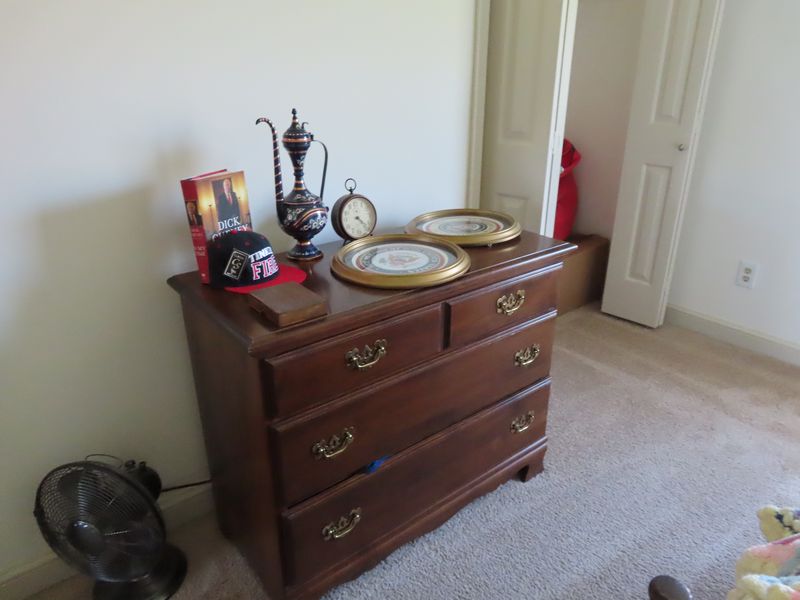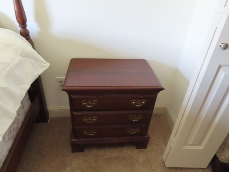 - Furniture incl. Rocker recliner, dual reclining sofa, solid oak table with four chairs and two leaves, solid oak secretary desk, three solid oak Corner cabinets, solid cherry master bedroom furniture with dressers, high boy chest of drawers, nightstands, queen size bed, armoire with mirrors and more!